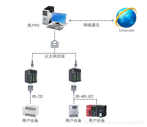 2、多样的通讯接口,可同时使用Rs232/485及Rs422等方式与网关进行通讯。